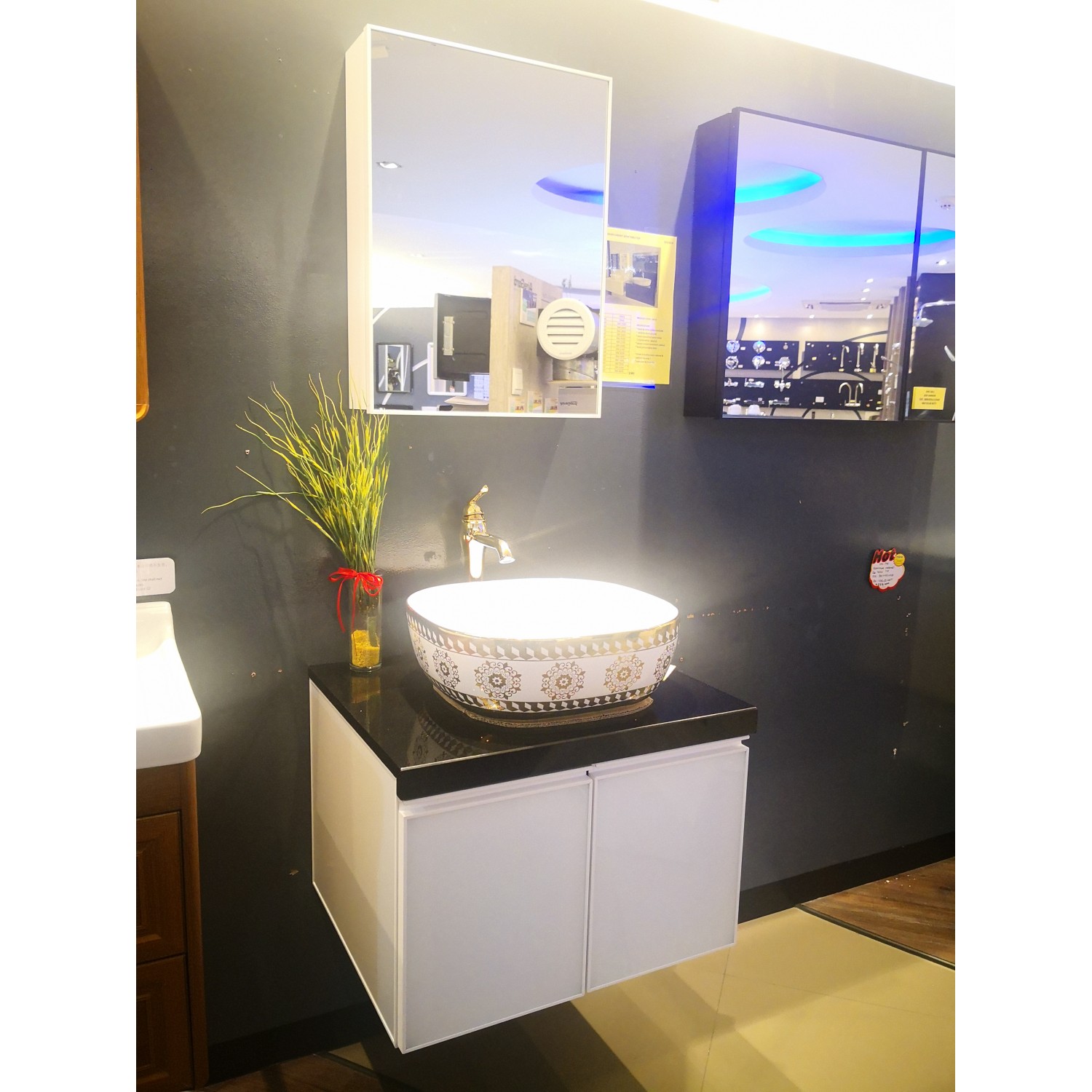 BASIN CABINET BLACK TOP WHITE CABINET 600MM